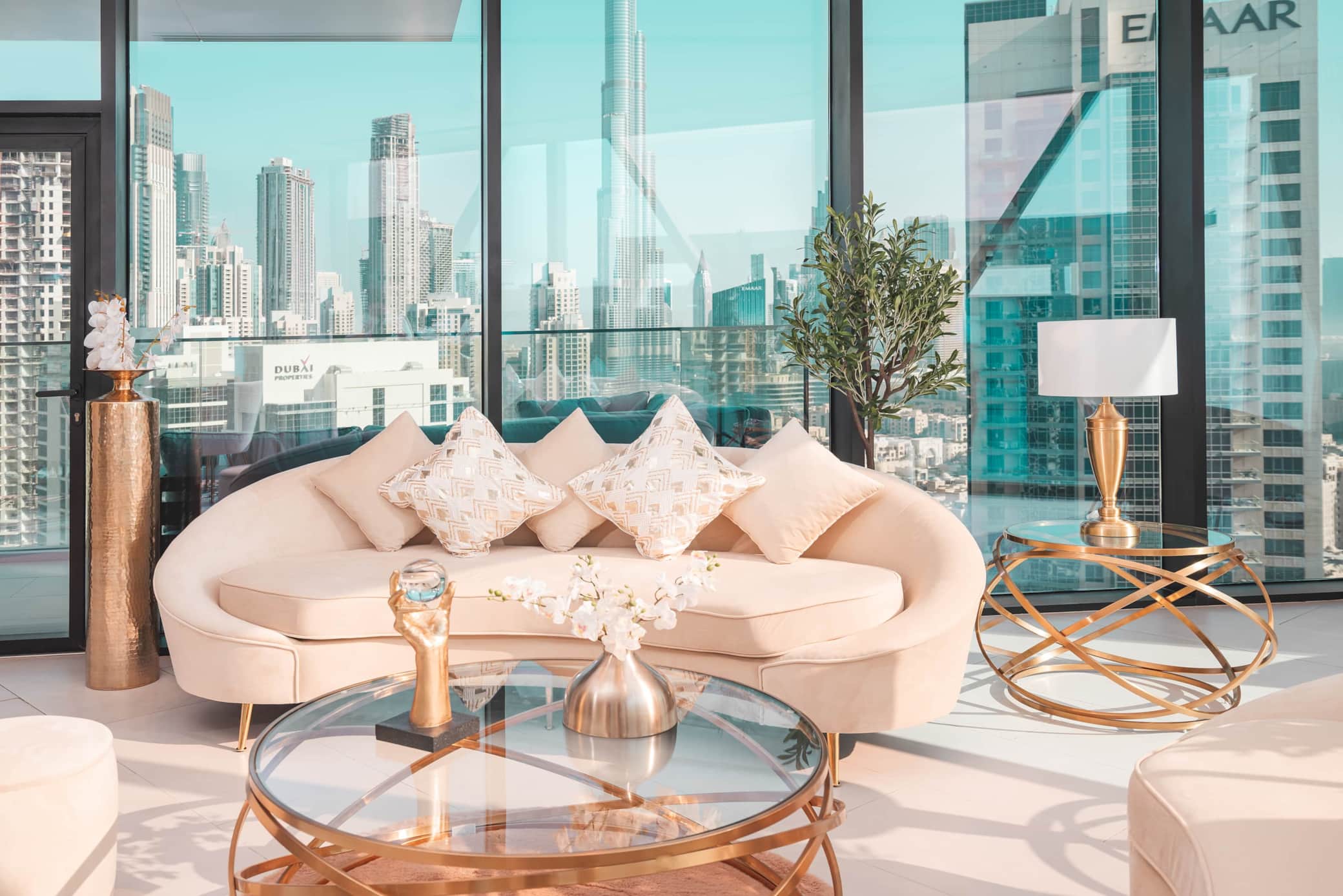This luxuriously designed apartment has a direct mesmerizing view on the Burj Khalifa and the Dubai Skyline from the balcony, while it is located right in close proximity to the largest mall in the world with just 15 minutes away from the airport.