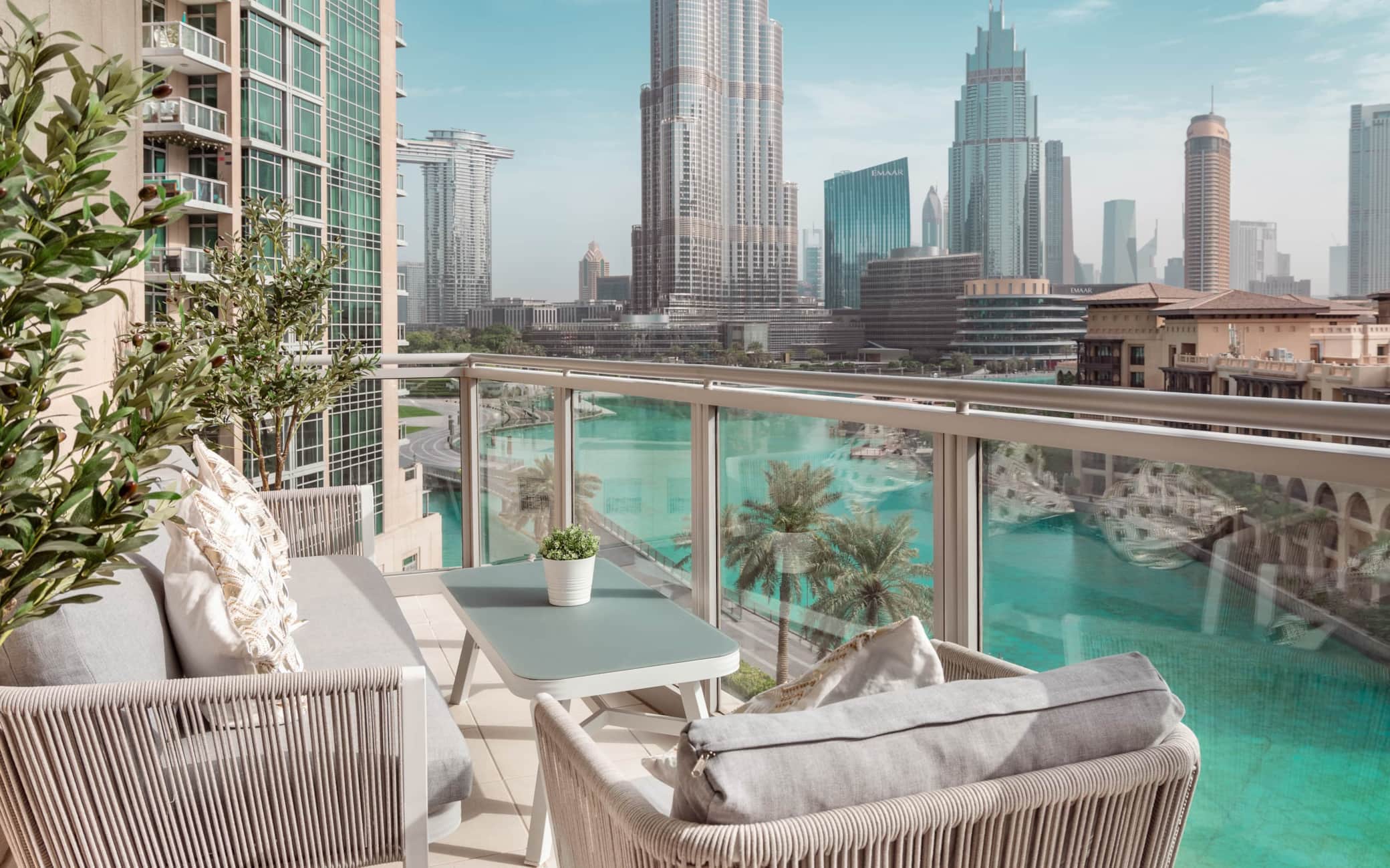 This luxuriously designed apartment has a unique direct full view on the Burj Khalifa and the Dancing fountain from the balcony, while it is located right next to the largest mall in the world with just 15 minutes away from the airport.